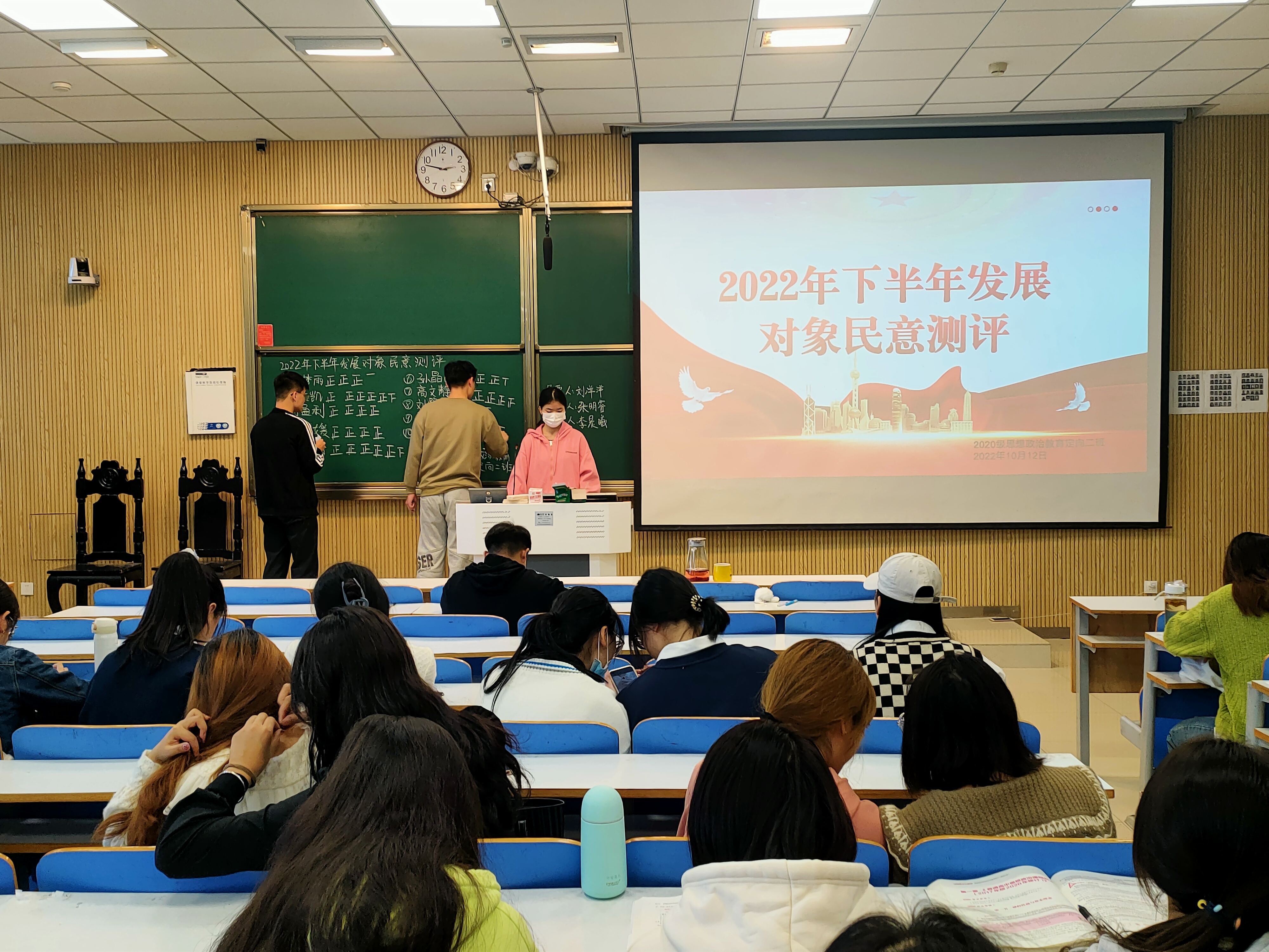 10月13日下午,beat365亚洲版官网2020级思想政治教育定向二班在社科楼515教室召开2022年下半年党员发展对象民意测评会。定向二班全体同学共同参与此次会议。会议由团支书李晨曦主持。