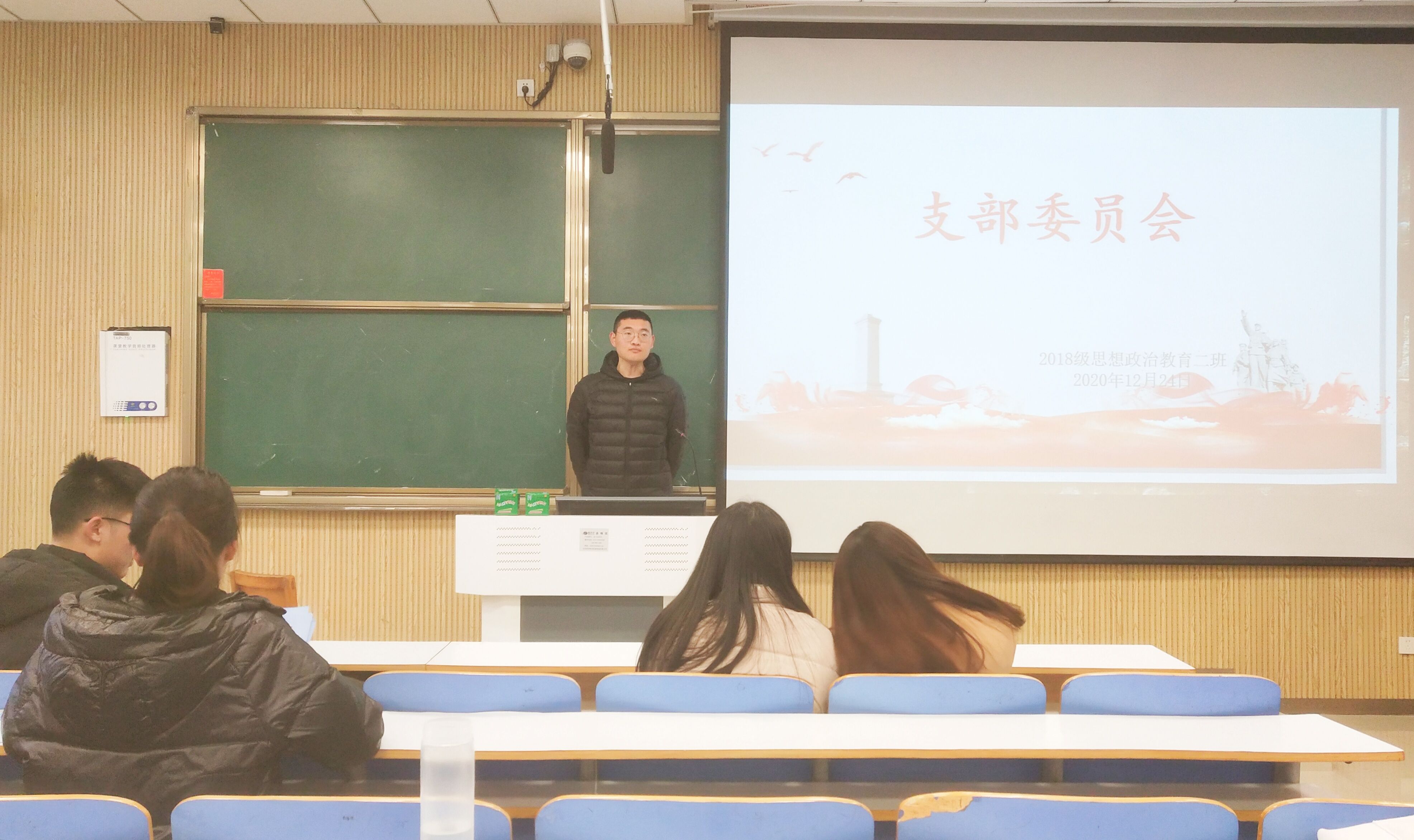 12月24日下午,beat365官网2018级思想政治教育第二团支部在社科楼515教室顺利开展支部委员会。会议由2018级思想政治教育第二团支部副书记杨康主持。