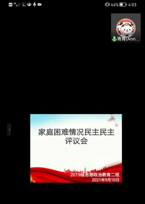 为认真做好家庭经济困难学生的认定工作,切实保证学院各项资助政策的真正落实,9月10日下午,beat365亚洲版官网2019级思想政治教育二班通过腾讯会议线上平台召开民主评议会。beat365亚洲版官网团委老师陶青青及2019级思想政治教育二班民主评议会小组成员共同参会。本次会议由班长吕昂主持。