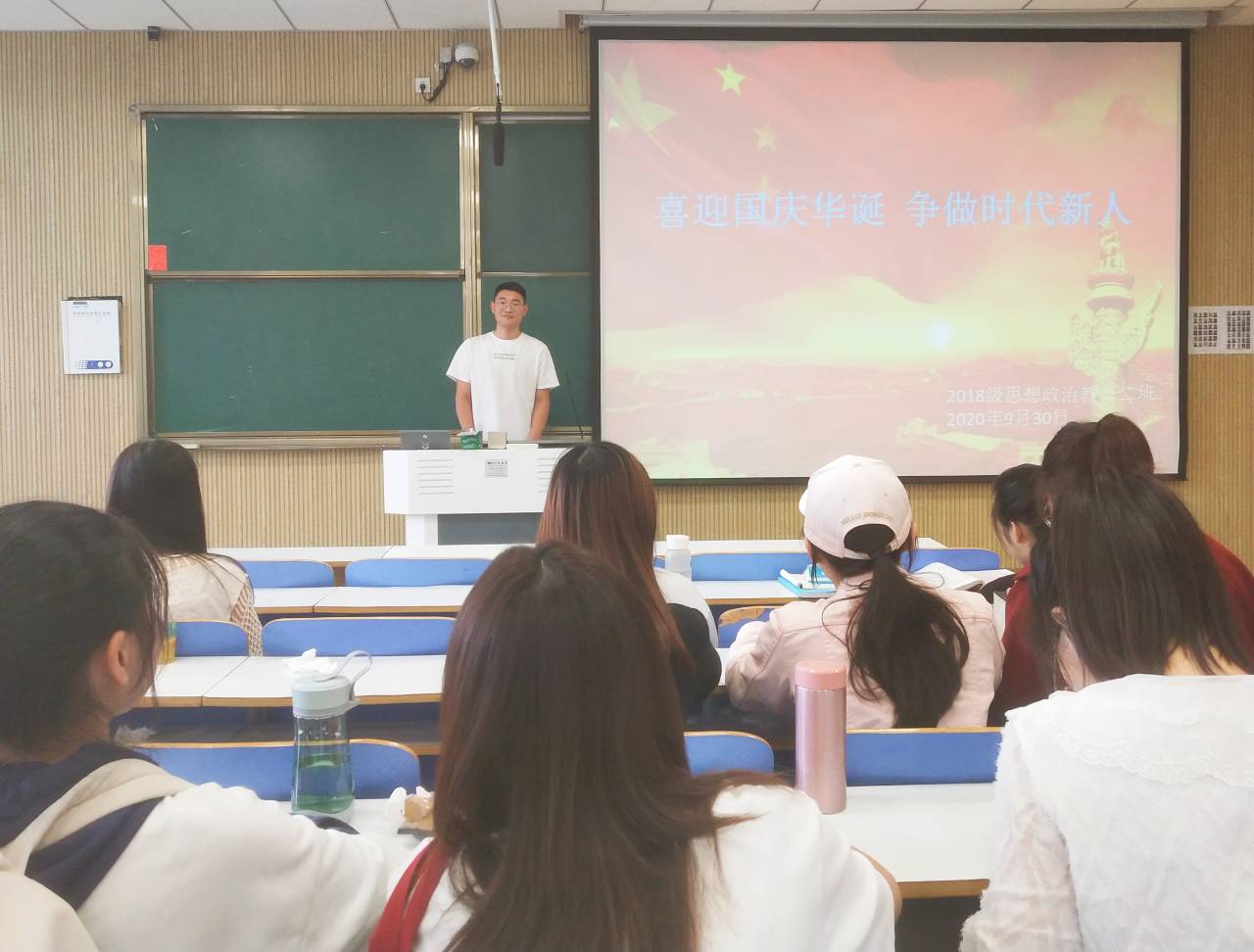 为纪念祖国七十一年华诞,激发同学们的爱国奉献精神,9月29日——10月8日,beat365官网2018级思想政治教育二班开展了“弘扬核心价值观,展现青年担当”建国七十一周年主题团日活动。beat365官网2018级思想政治教育二班全体成员共同参加了本次活动。活动由班长杨康、团支书黄子晋主持。