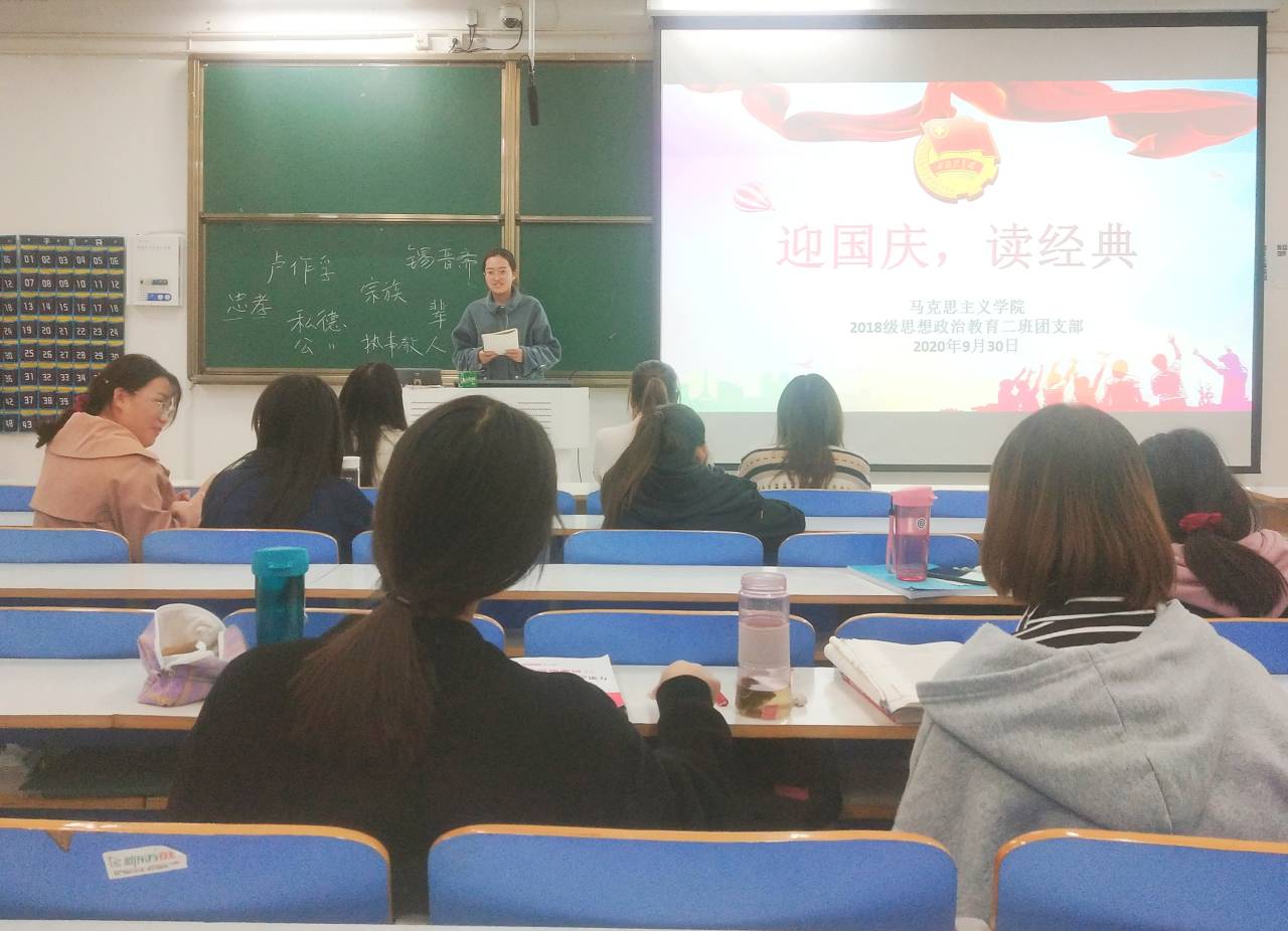本次活动以理论学习、实践学习、线上线下活动的形式为新中国成立71周年献礼。首先,在“喜迎国庆华诞,争做时代新人”主题团课中,杨康指出,奋斗是青春最亮丽的底色,我们要争做新时代青年,把青春热血奉献给伟大祖国。在“迎国庆,读经典”读书会上,黄子晋介绍、推荐了《习近平的七年知青岁月》《红岩》等经典书籍,分享了自己阅读感悟,表示定当不忘初心,牢记使命,展现出新时代大学生的蓬勃朝气和爱国热情。接着,在国庆节当日,同学们积极参与“我对祖国有话说”线上互动活动。同时,宣传委员张甜甜将同学们在疫情期间所做志愿活动与祖国抗疫防疫相联系,在微博平台推送文章彰显青年时代担当。最后,同学们在宣传展板上签字,表达出对建国七十一周年的美好祝福。