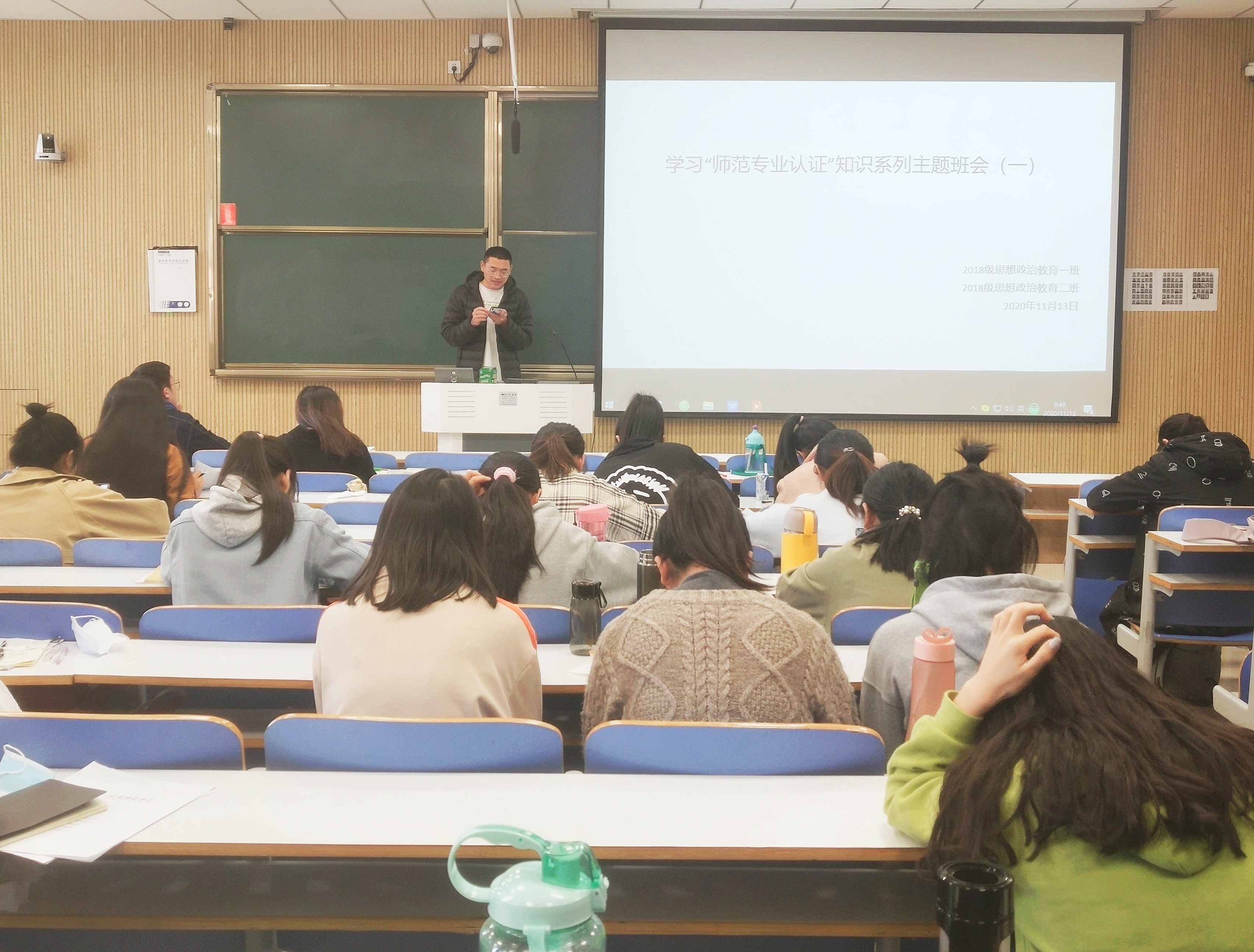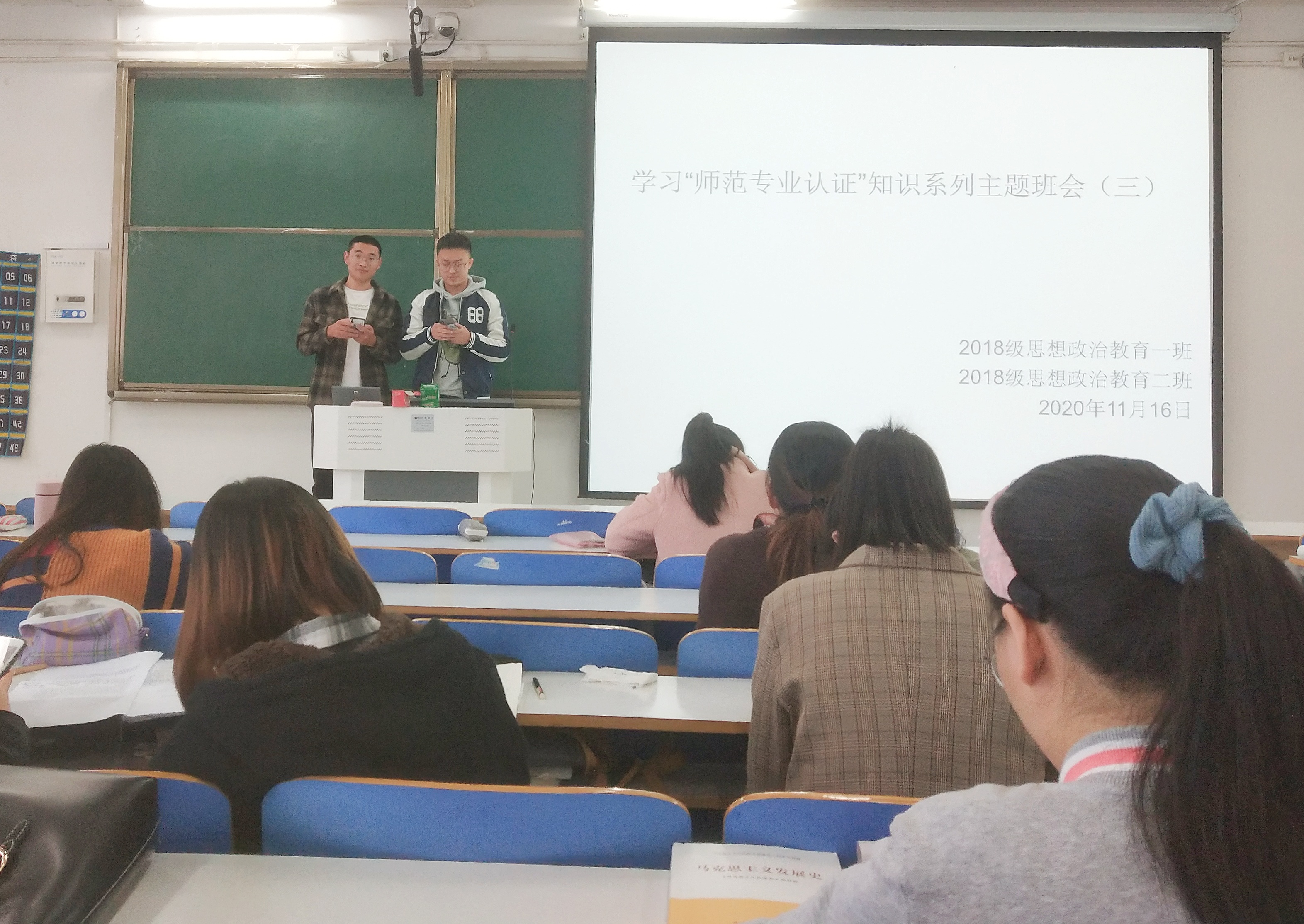 11月13日——11月16日,beat365亚洲版官网2018级思想政治教育二班在社科楼515教室顺利开展学习“师范专业认证”知识系列主题班会。会议由班长杨康主持。