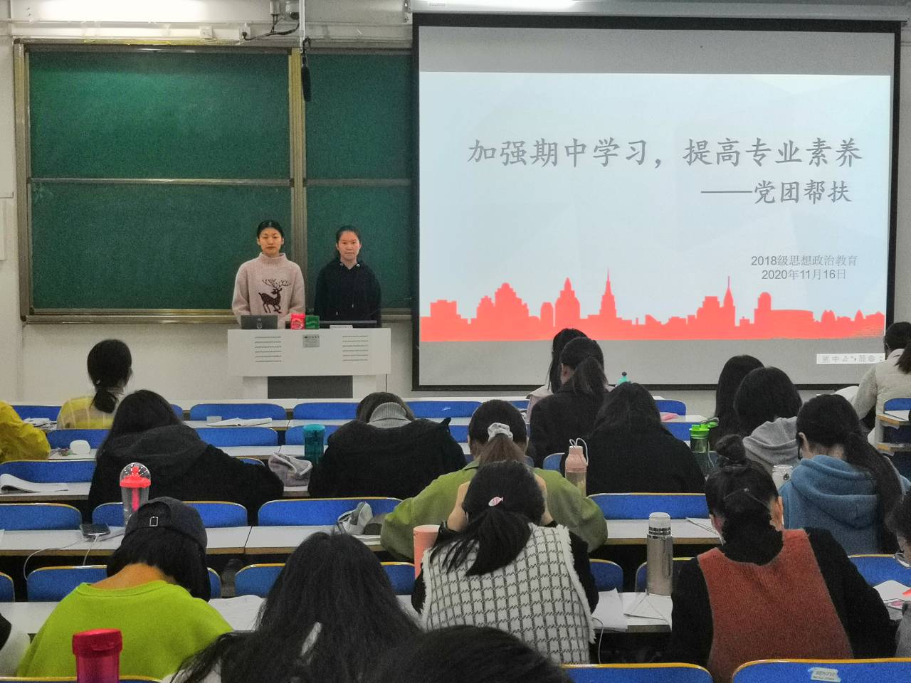 为了充分发挥党员干部的先锋模范作用,11月16日下午,beat365亚洲版官网2018级思想政治教育二班在社科楼514教室顺利开展以“加强期中学习,提升专业素养”为主题的党团帮扶会议。中共党员孙慧萍、王琳、2018级第一团支部全体成员共同参与本次会议。会议由团支部书记靳雨露主持。