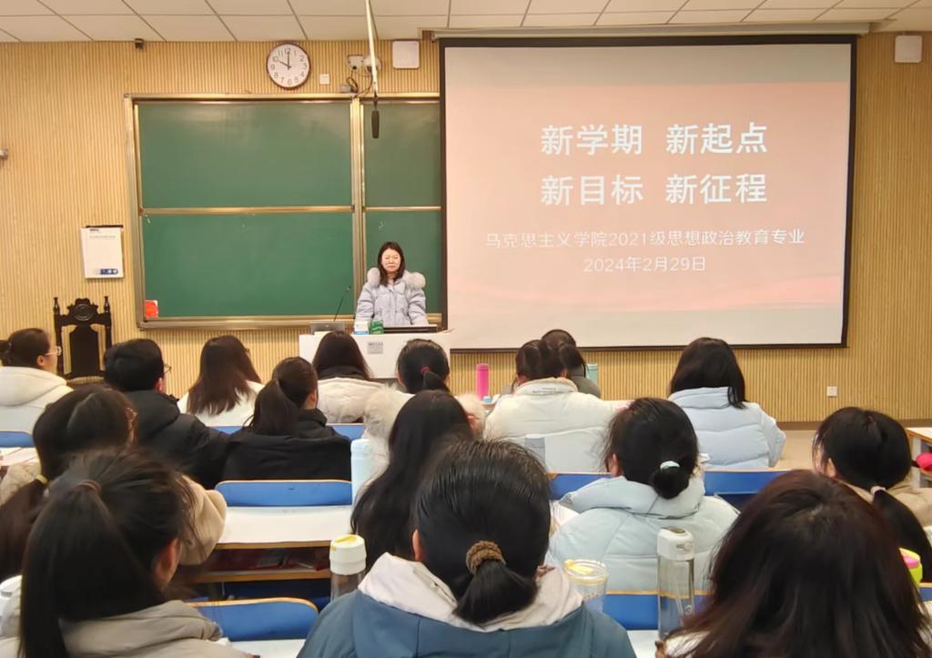 2月29日上午,beat365亚洲版官网2021级思想政治教育三班、四班在社科楼515教室召开“新学期,新起点,新目标,新征程”主题班会。辅导员高小佳及2021级思想政治教育全体学生共同参加本次班会。班会由辅导员高小佳主持。