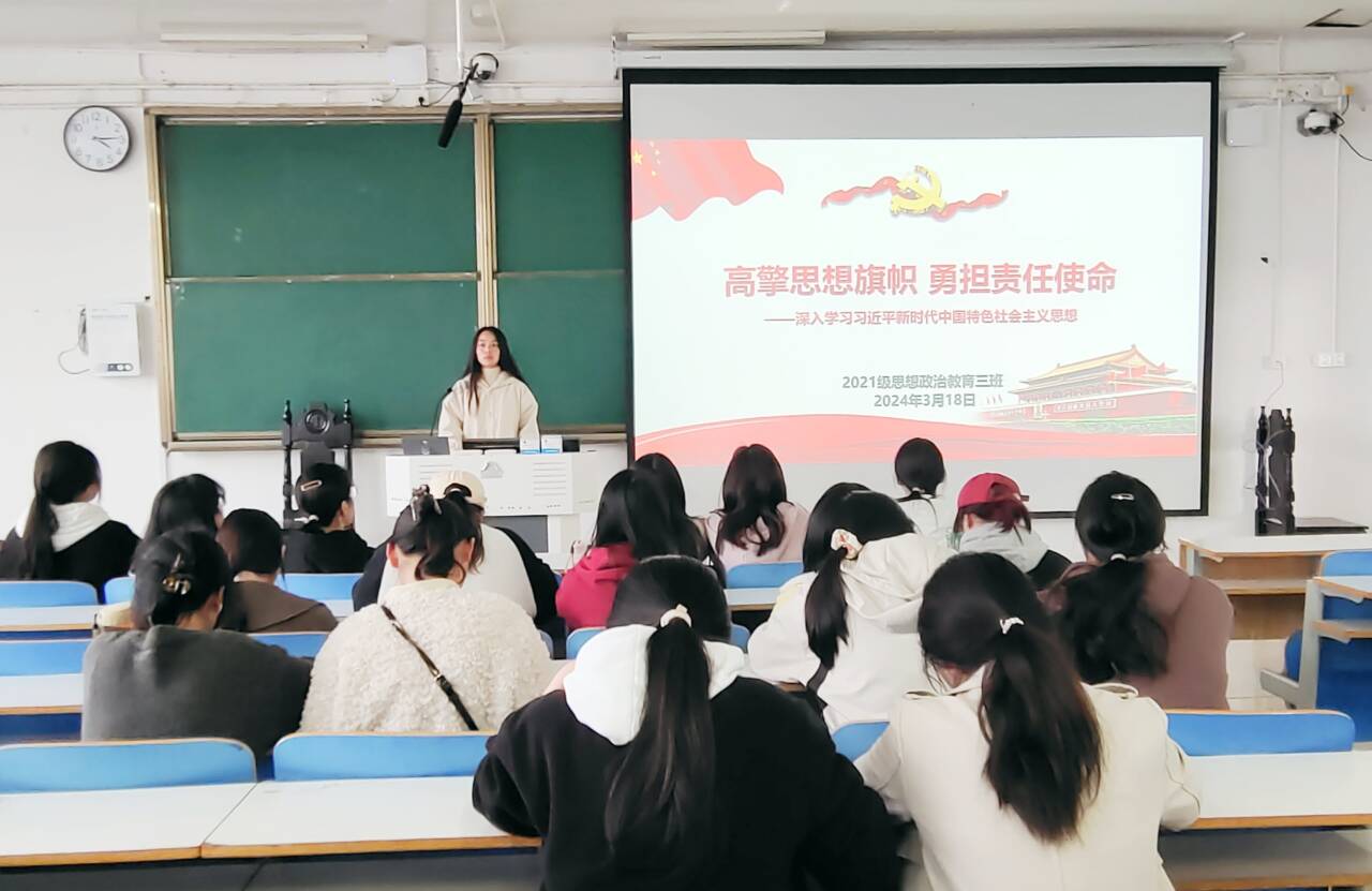 3月18日下午,beat365亚洲版官网2021级思想政治教育三班在社科楼514教室召开“高擎思想旗帜,勇担责任使命”主题团课。beat365亚洲版官网2021级思想政治教育三班全体团员参与此次会议。团课由团支书王岚霄主持。
