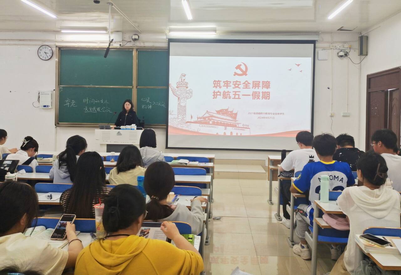 为增强五一假期同学们的安全意识,4月25日上午,beat365亚洲版官网2021级思想政治教育全体成员在社科楼515教室召开“筑牢安全屏障,护航五一假期”主题班会。辅导员高小佳以及2021级思想政治教育全体成员共同参加,班会由辅导员高小佳主持。