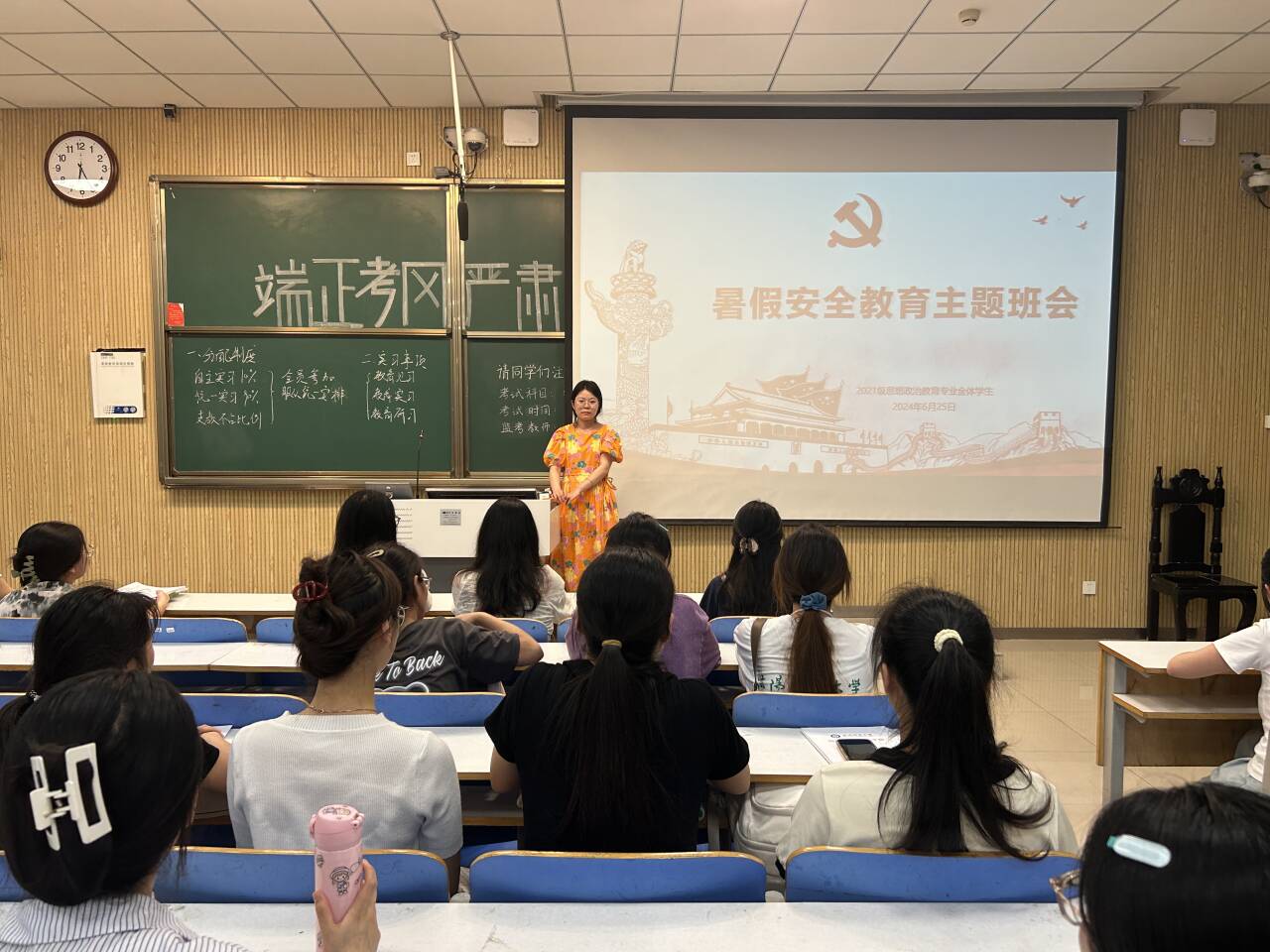 6月25日下午,beat365亚洲版官网2021级思想政治教育三班、四班在社科楼515教室召开“暑期安全教育班会”。辅导员高小佳及全体成员共同参加,班会由辅导员高小佳主持。