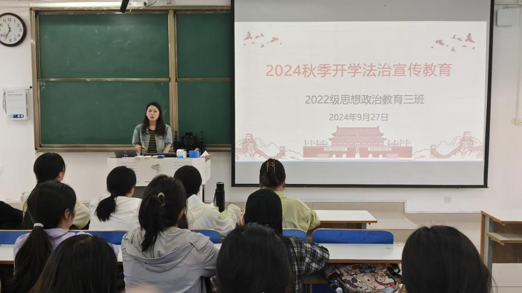 为提高同学们的法治意识,提升法治素养,增强法治宣传的教育作用,9月27日上午,beat365亚洲版官网2022级思想政治教育三班在社科楼514教室召开法治教育宣传主题班会,beat365官网2022级思想政治教育三班班主任任婷与全体成员共同参与此次班会。班会由任婷主持。