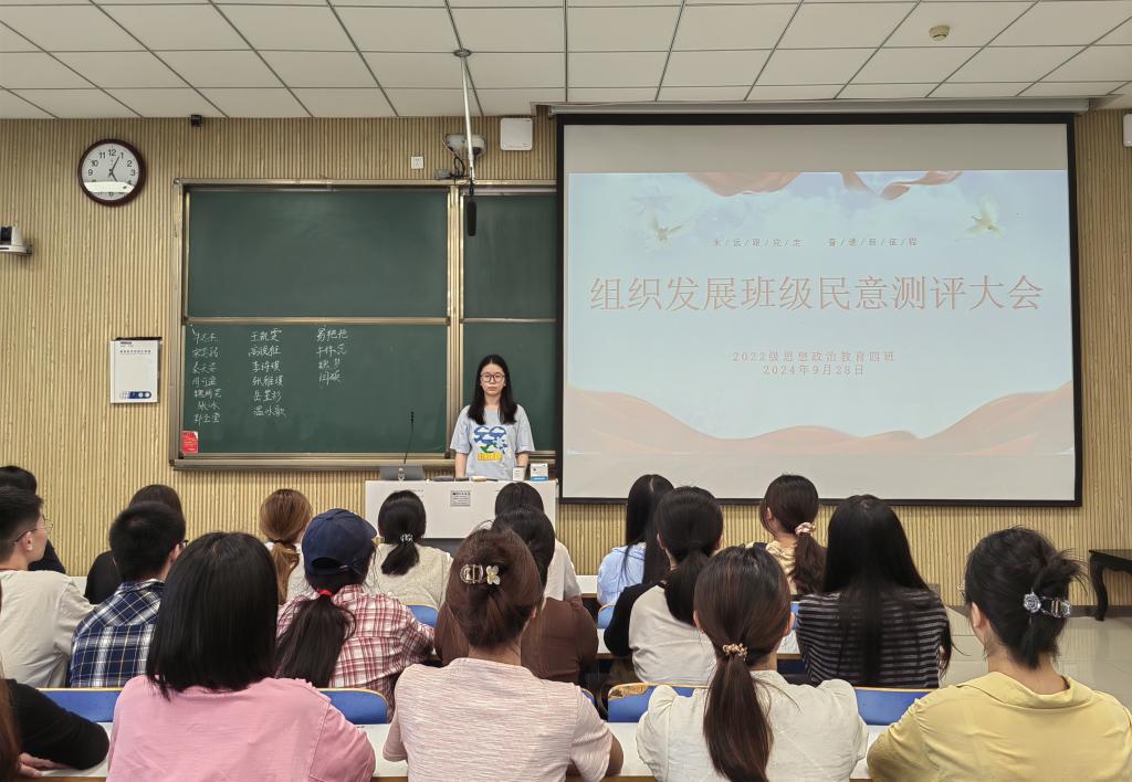 9月28日下午,beat365亚洲版官网2022级思想政治教育四班在社科楼515教室组织召开“组织发展班级民意测评大会”。beat365官网2022级思想政治教育四班全体成员参与本次大会。本次大会由团支书牛志杰主持。