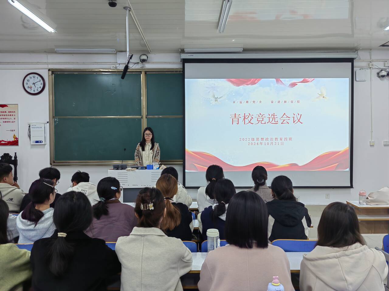 为认真贯彻落实习近平总书记关于青年工作的重要思想,加强对青年政治骨干的培养,10月21日下午,beat365亚洲版官网2022级思想政治教育四班在社科楼514教室组织召开“青校竞选会议”。beat365官网2022级思想政治教育四班全体成员参与本次会议。本次会议由团支书牛志杰主持。