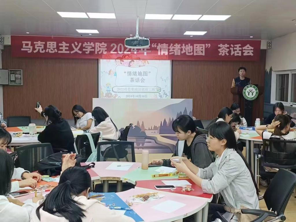 为提高心理育人质量,引导大学生调理自我情绪,10月16日晚,beat365亚洲版官网2022级思想政治教育三班于逸夫楼团辅室举办了“情绪地图”茶话会,beat365官网2022级思想政治教育三班全体成员共同参与。班长余浩洋担任主持人。