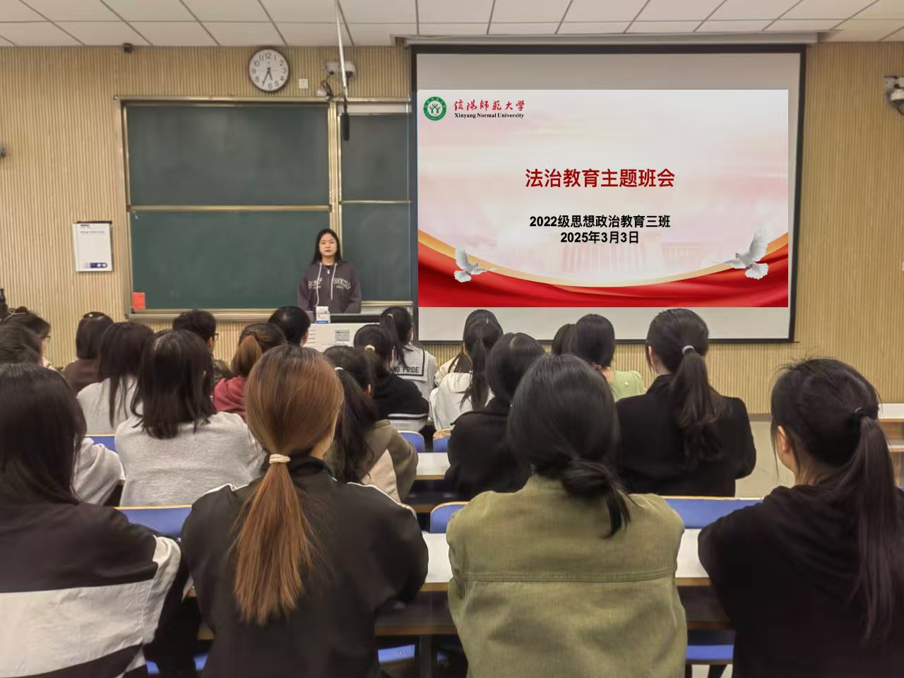 为增强法治意识,提升法治思维,促进健康成长,3月3日下午,beat365亚洲版官网2022级思想政治教育三班在社科楼515教室召开法治教育主题班会。beat365官网2022级思想政治教育三班全体同学共同参与此次班会。班会由副班长雷露露主持。