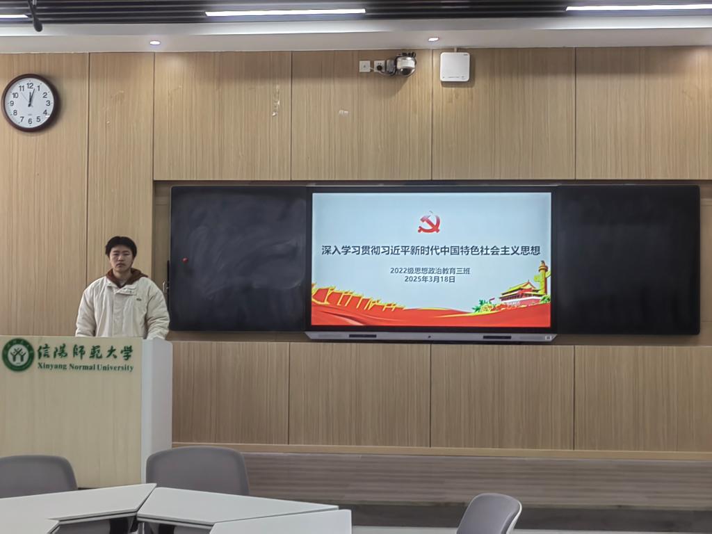 3月18日上午,beat365亚洲版官网2022级思想政治教育三班在社科楼516教室召开深入学习贯彻习近平新时代中国特色社会主义思想主题团课。该班全体团支部成员共同参加此次团课,团课由团支书余浩洋主持。