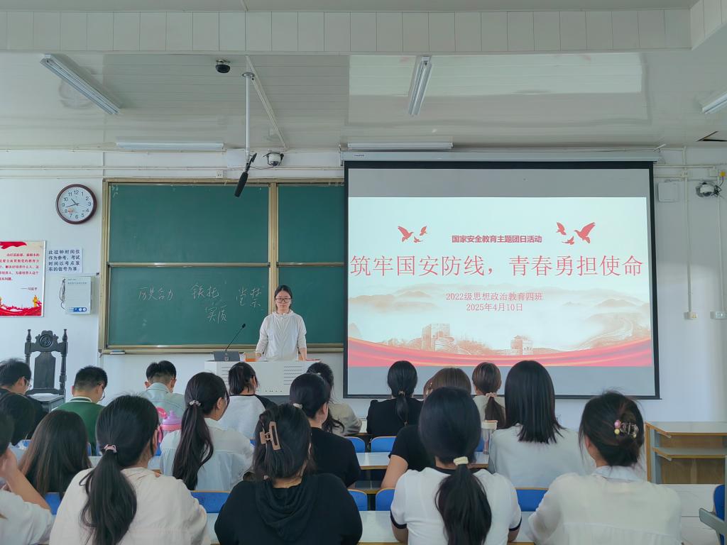 国家安全是国家生存和发展最基本、最重要的前提,4月10日上午,beat365亚洲版官网2022级思想政治教育四班在社科楼514教室组织召开“筑牢国安防线,青春勇担使命”主题班会。beat365官网2022级思想政治教育四班全体成员参与本次班会。本次班会由班长牛志杰主持。