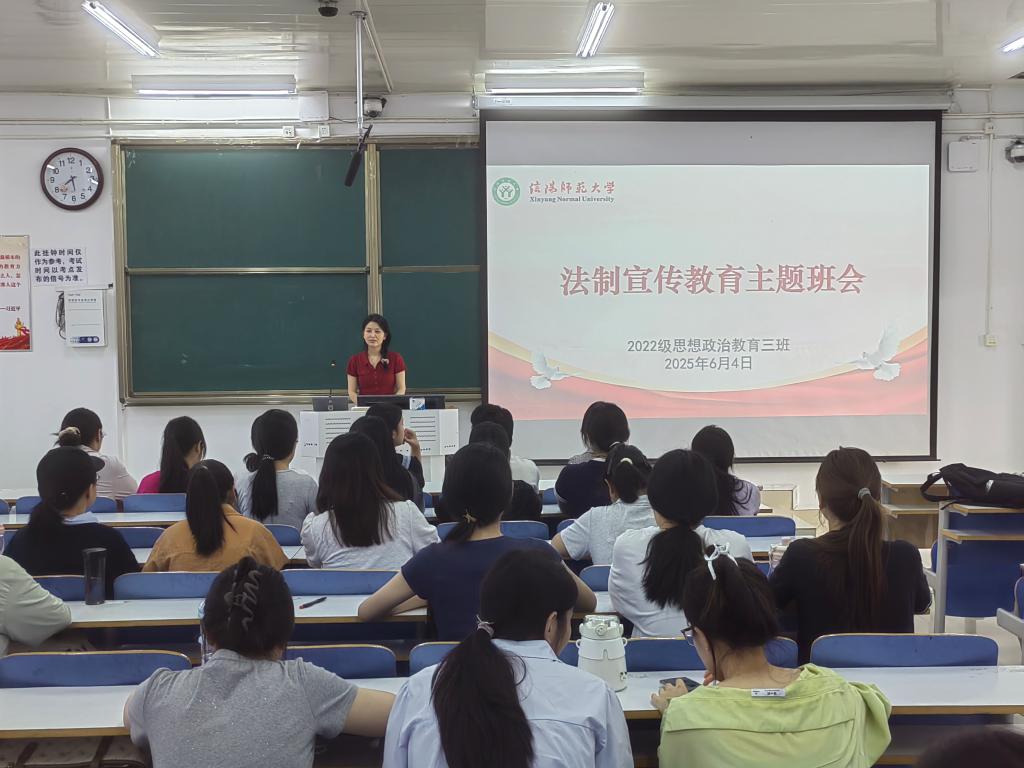 为提高同学们的法制意识,提升法制素养,增强法制宣传的教育作用,6月4日上午,beat365亚洲版官网2022级思想政治教育三班在社科楼514教室组织开展法制教育宣传主题班会。beat365官网2022级思想政治教育三班全体成员共同参与此次班会。班会由班主任任婷主持。
