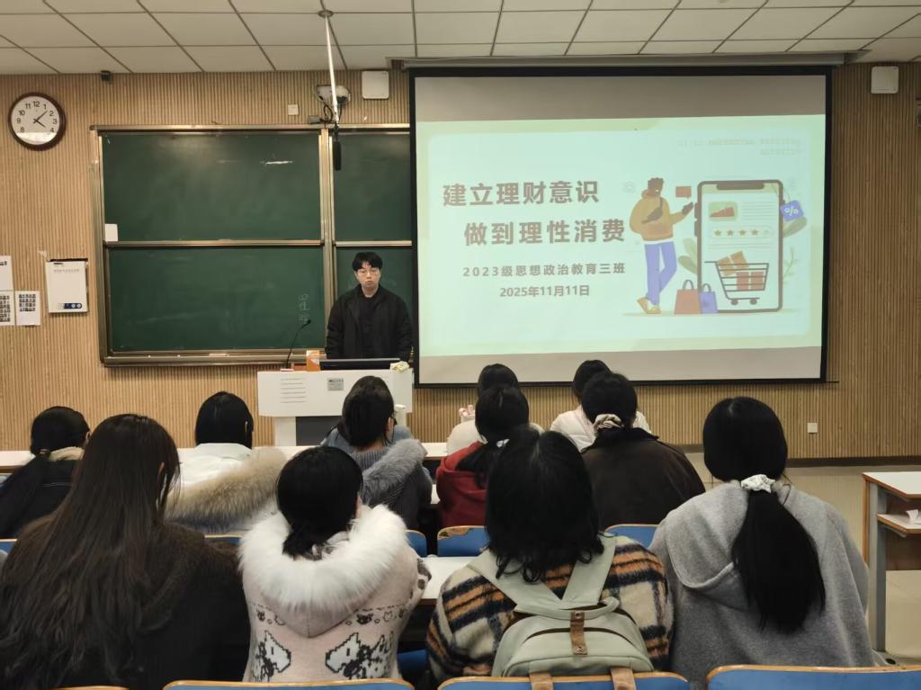 为帮助学生树立正确的消费观,11月11日上午,beat365亚洲版官网2023级思想政治教育三班在社科楼515召开“理智消费,健康生活”主题班会。beat365官网2023级思想政治教育三班全体同学共同参与本次班会,班会由团支书郝瀚主持。