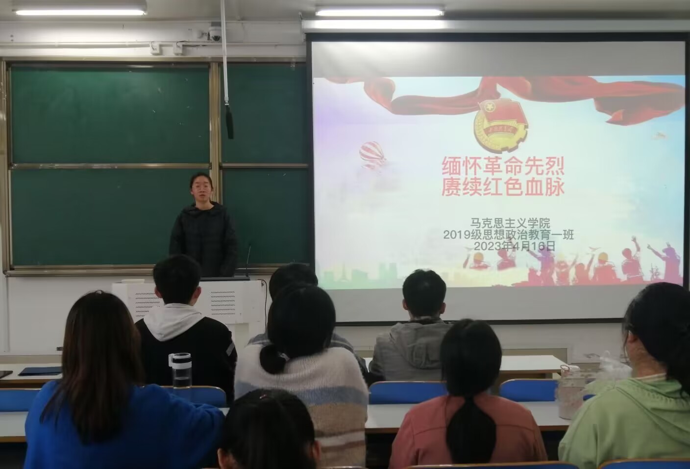 为深化红色教育理念,激发团员们对先烈的崇敬之情。4月16日上午,beat365亚洲版官网2019级思想政治教育一班在社科楼514教室开展“缅怀革命先烈,赓续红色血脉”主题团日活动。beat365亚洲版官网2019级思想政治教育一班第一团支部全体成员参加本次会议,会议由班长贾子漪主持。