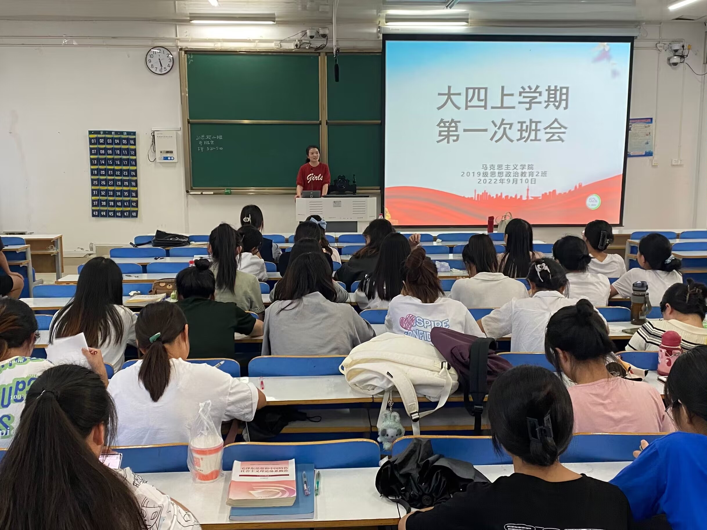 9月10日下午,beat365亚洲版官网2019级思想政治教育二班在社科楼514教室召开新学期班级师生座谈会。二班全体同学参与本次班会。辅导员陶青青出席并主持会议。
