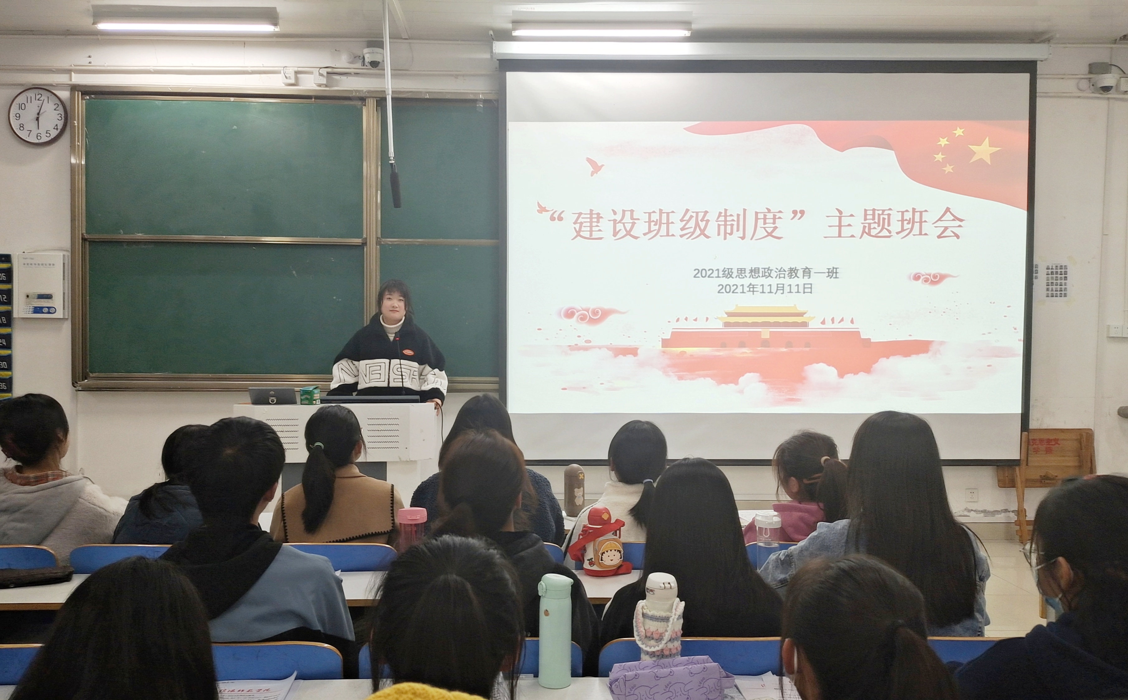 为了打造一个井然有序、遵纪守约的文明班集体。11月11日下午,beat365亚洲版官网2021级思想政治教育一班在社科楼516教室召开“建设班级制度”主题班会。2021级思想政治教育一班全体成员参加了本次班会。班会由副班长雷敏主持。